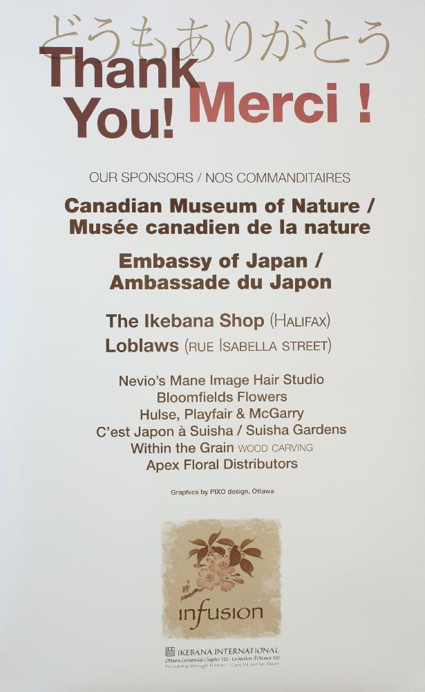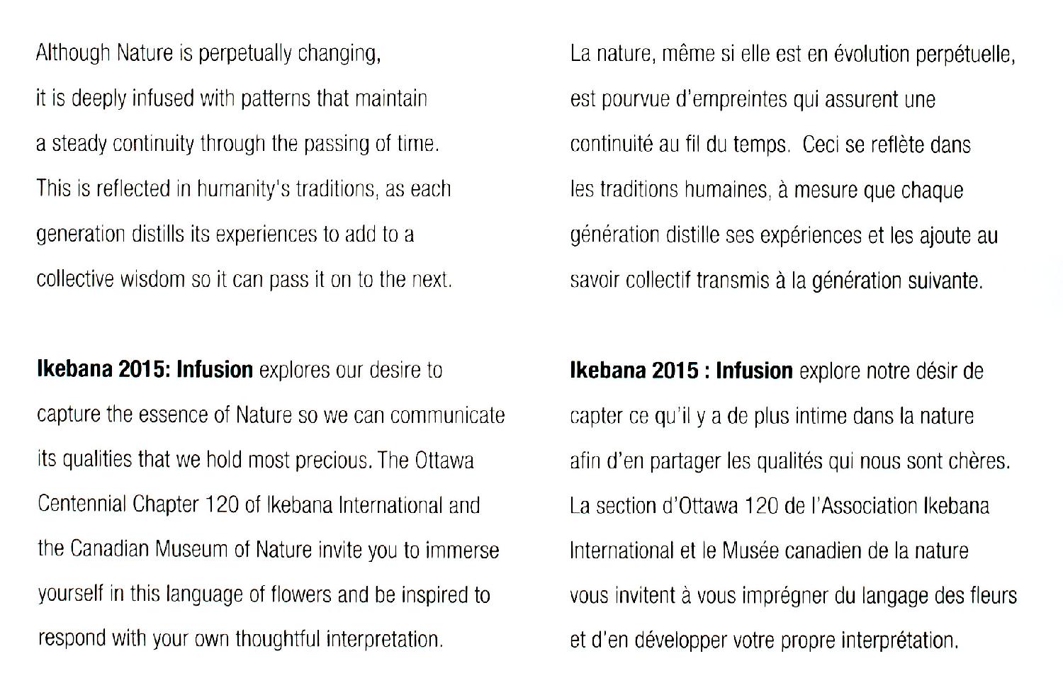 36th Annual Ikebana Exhibitionorganized byIkebana International - Ottawaheld at the Canadian Museum of Nature in Ottawa, CanadaApril 16 through 19, 2015 |