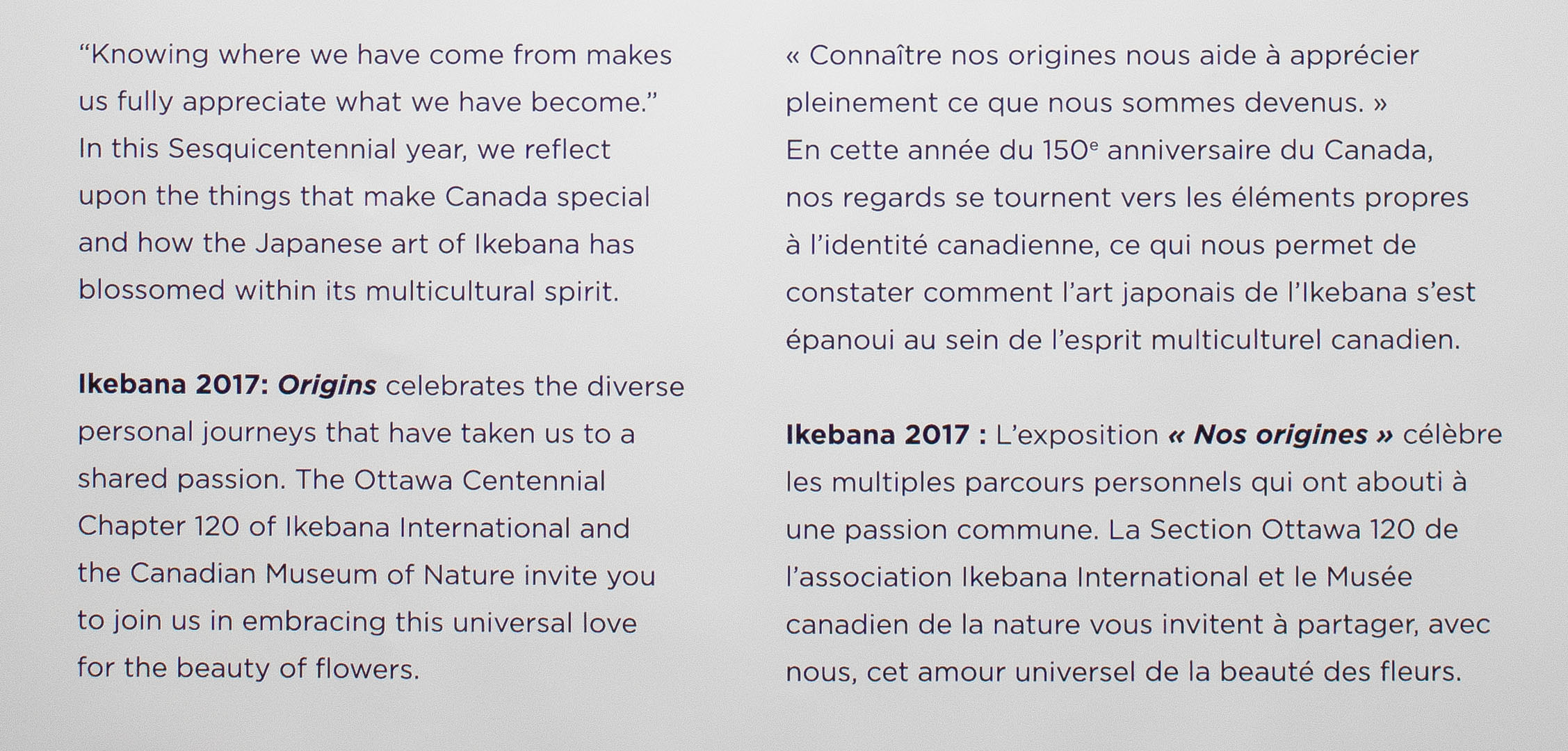 38th Annual Ikebana Exhibitionorganized byIkebana International - Ottawaheld at the Canadian Museum of Nature in Ottawa, CanadaMarch 30 through April 2, 2017 |