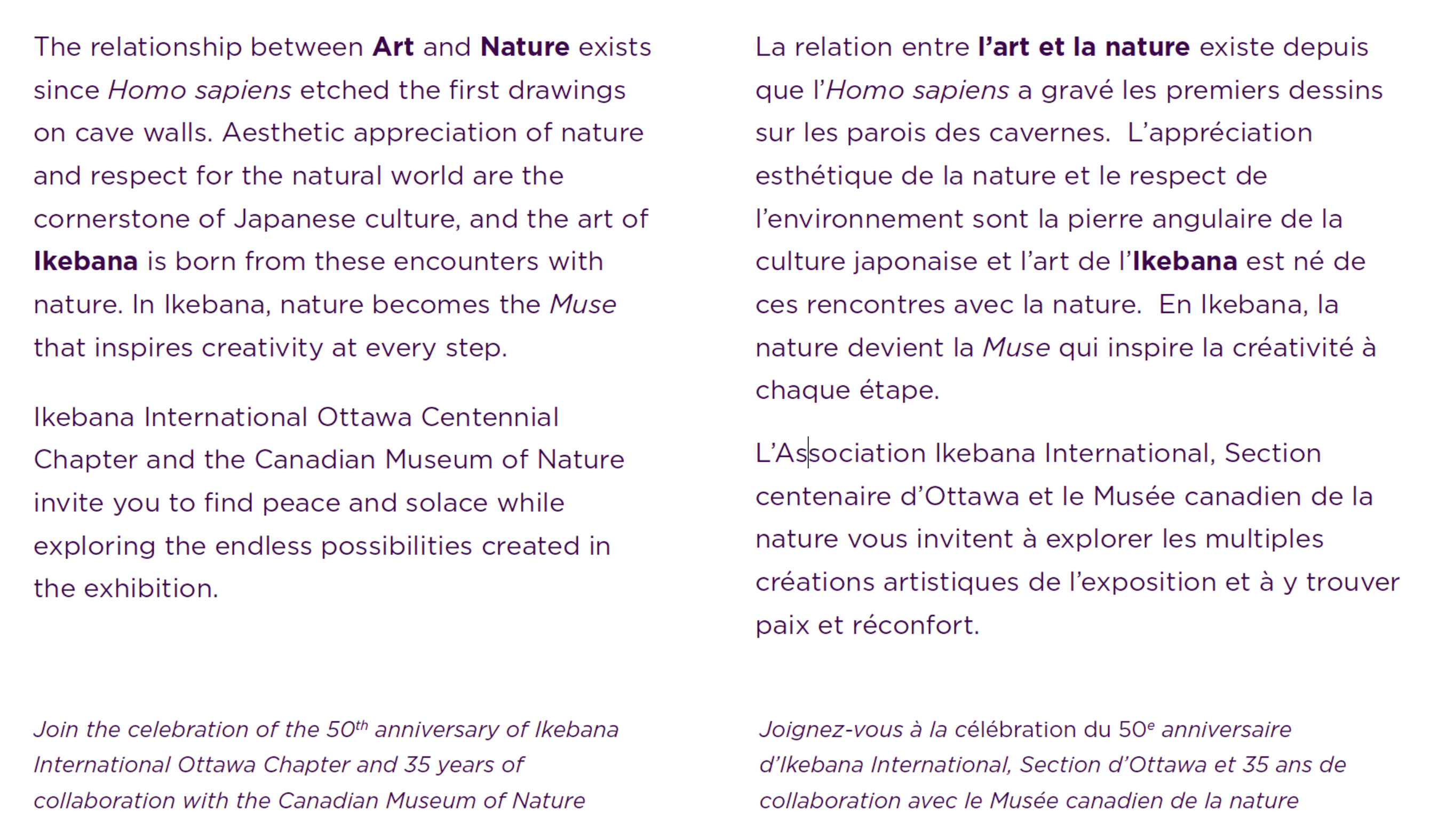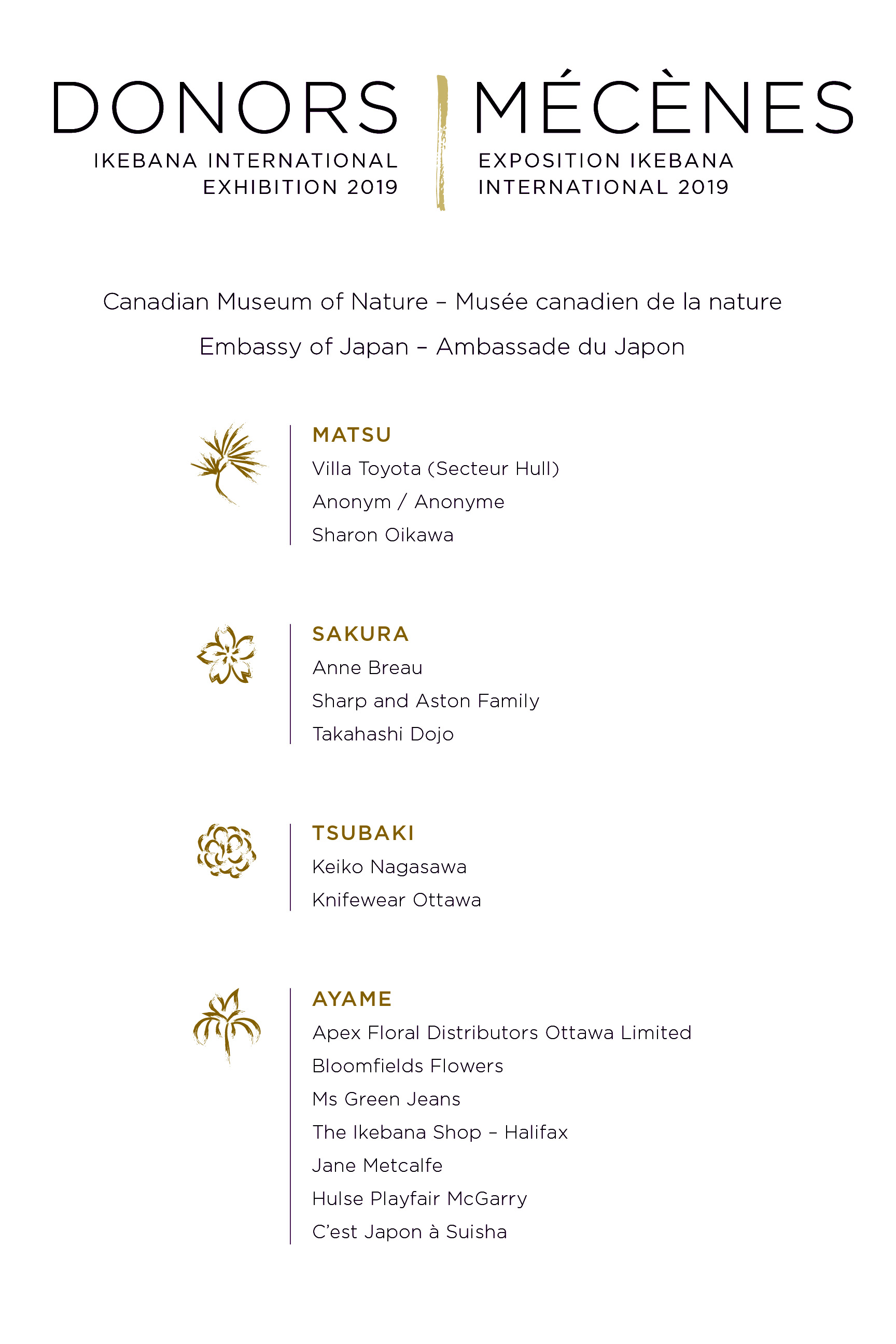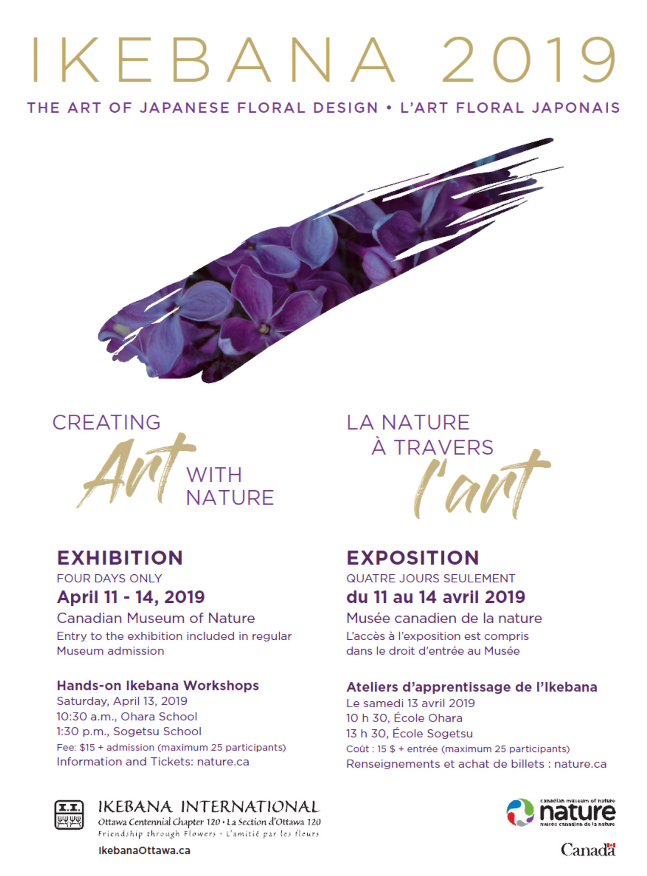 40th Annual Ikebana Exhibitionorganized byIkebana International - Ottawaheld at the Canadian Museum of Nature in Ottawa, CanadaApril 11 through 14, 2019